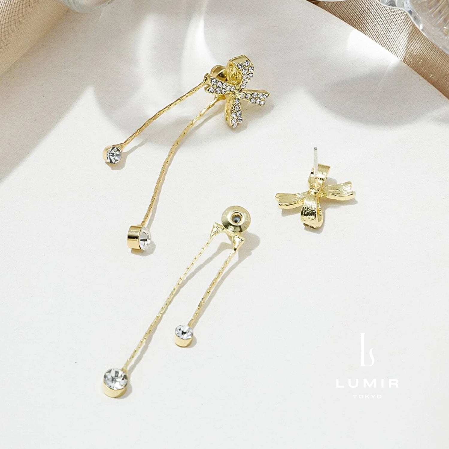 リボンモチーフと揺れるストーンが魅力のピアス。耳元で繊細に輝き、顔周りを華やかに彩ります。可愛らしくも上品なデザインで、どんなスタイルにもマッチ。日常使いからデートやお出かけまで、様々なシーンで活躍します。 ■カラー:ゴールド ■素材:サージカルステンレス / ジルコニア