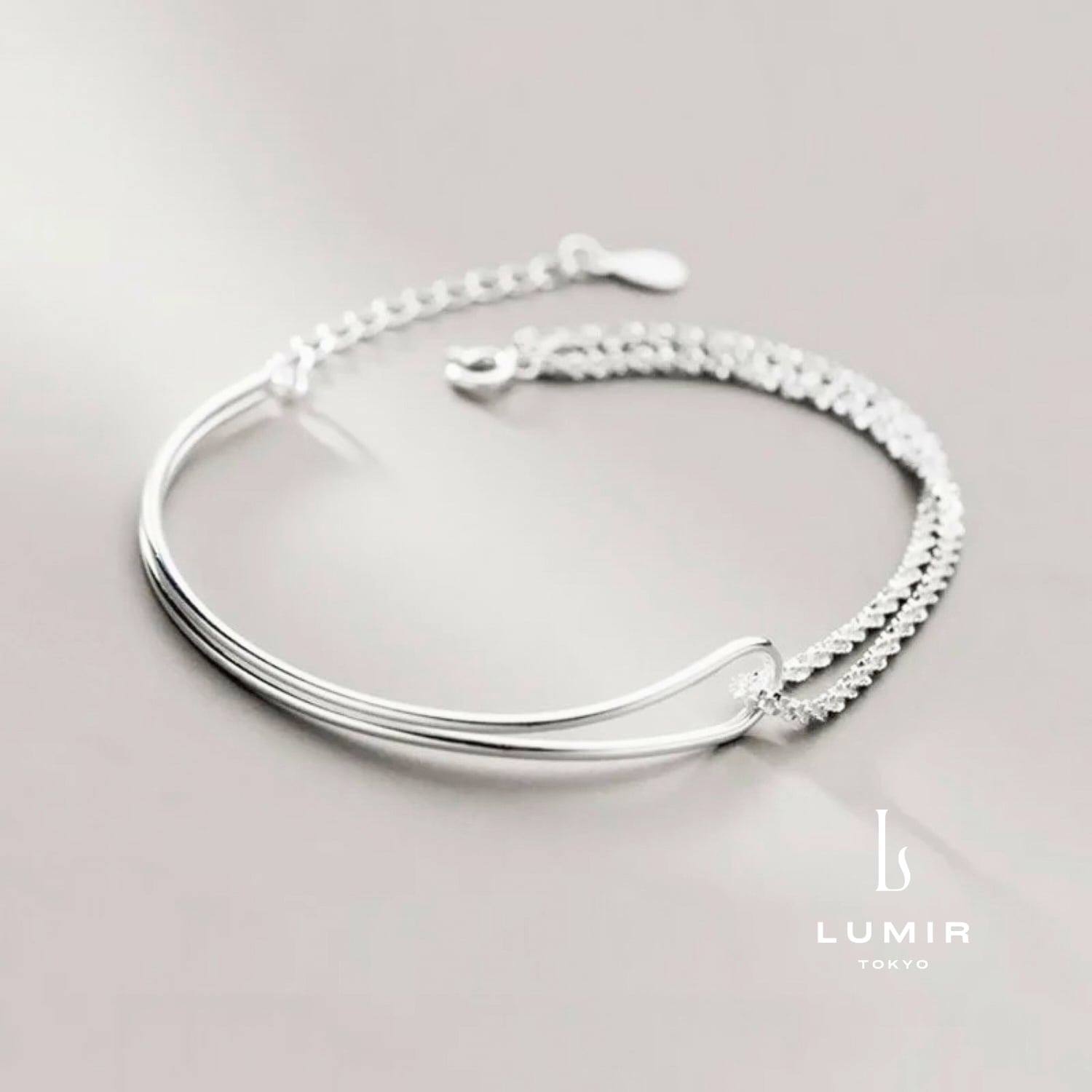 エレガントな雰囲気が魅力のエレガントラインバングル。 ダイヤモンドカットを施したチェーンの煌めきが手元に華やかさをもたらし、洗練された印象を与えてくれます。 カジュアルからフォーマルまで、様々なスタイルにお使いいただけます。 ■カラー:シルバー ■素材:シルバー925 ■サイズ:16cm+5cm(調整可能)