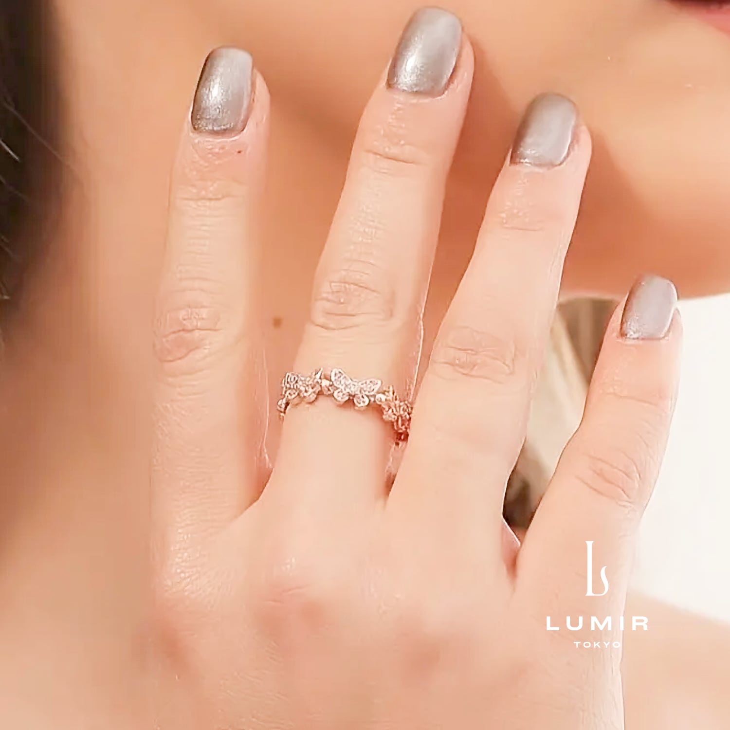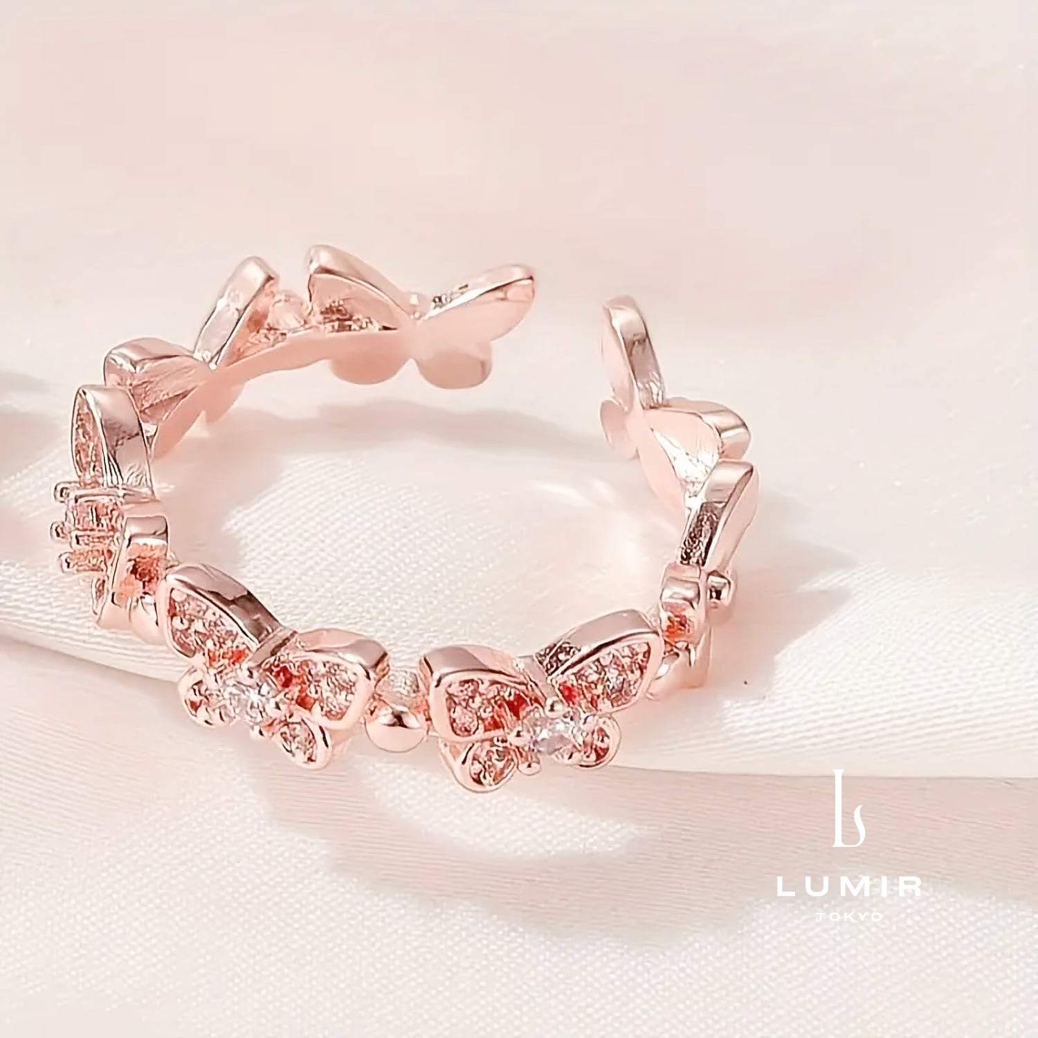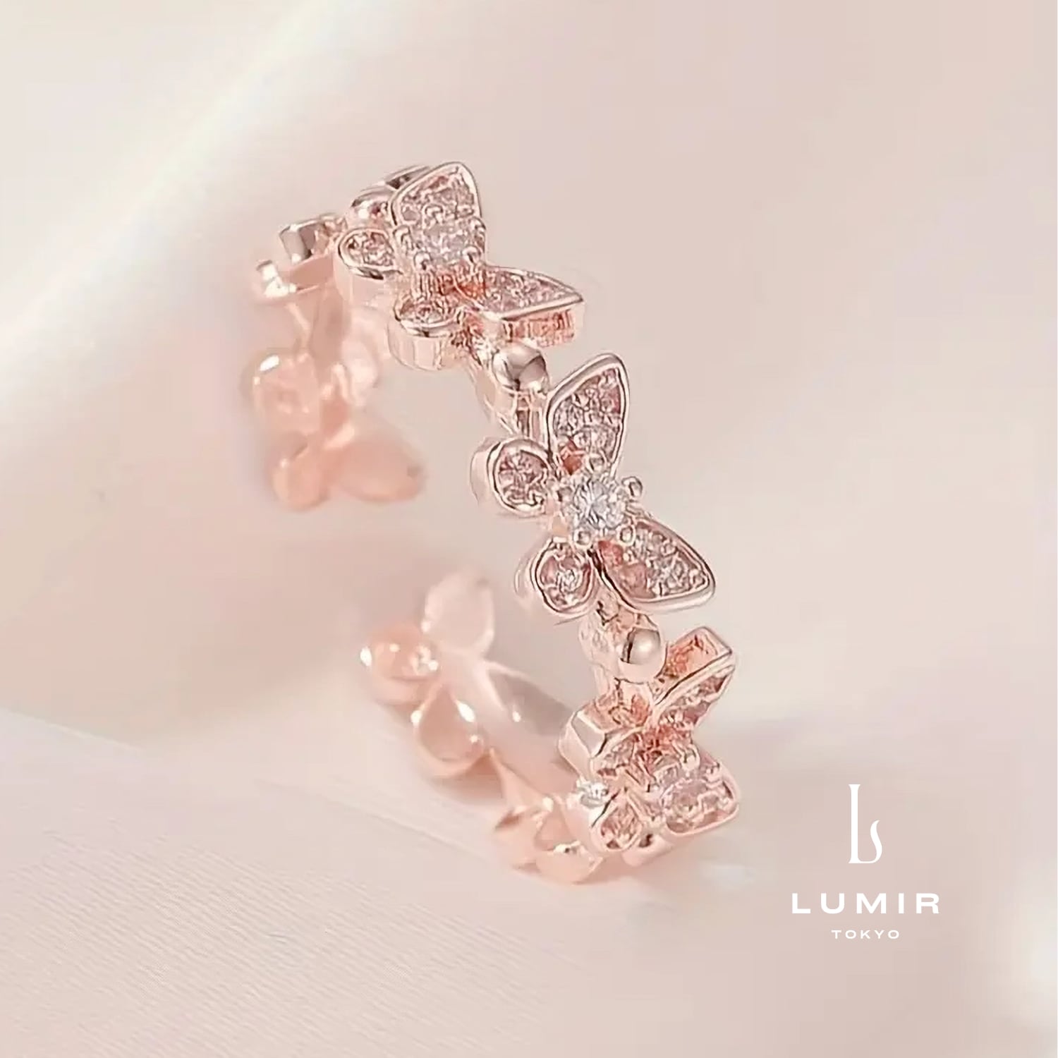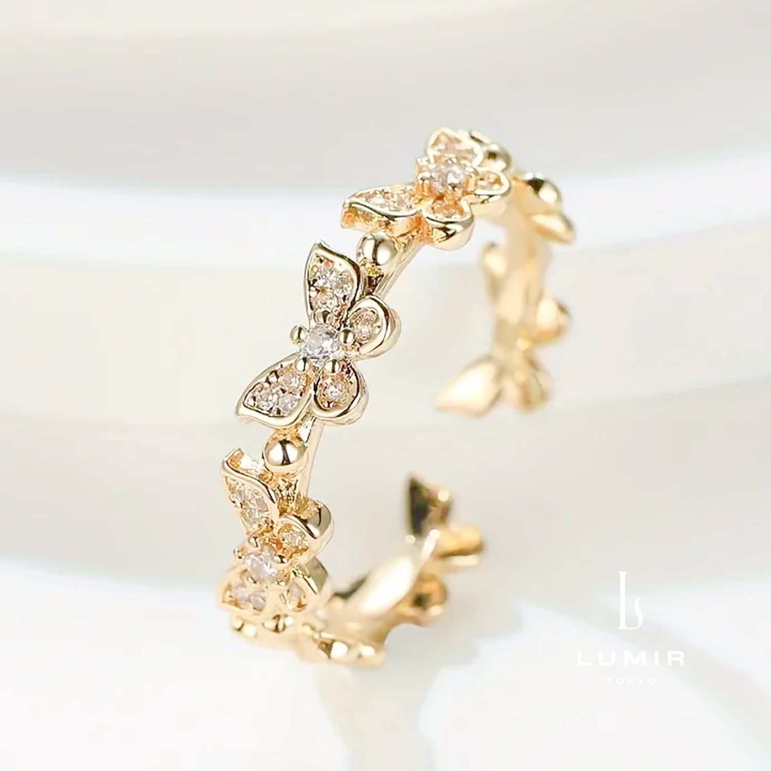 バタフライリュミエールリングは、優雅な蝶のデザインと輝きが特徴の魅力的なアクセサリーです。上質なジルコニアの輝きが指元を美しく彩り、日常のカジュアルなスタイルから特別な日の装飾まで、幅広いシーンでお使いいただけます。 ■カラー:ゴールド(14kgf)/ ローズゴールド(14kgf)/ シルバー ■素材:サージカルステンレス / ジルコニア ■サイズ:フリーサイズ(調整可能)